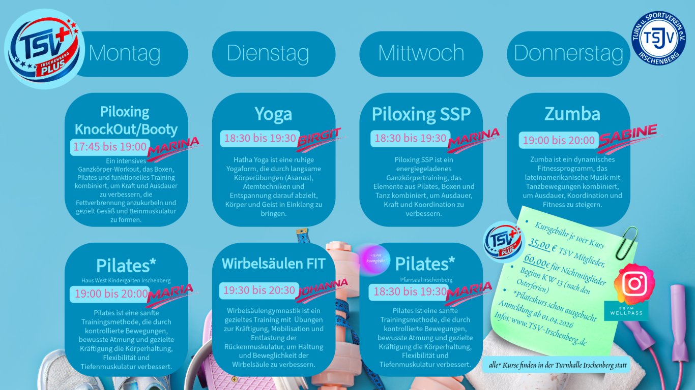 - ⚠️ Wichtig: Beide Pilates-Kurse sind leider bereits ausgebucht!